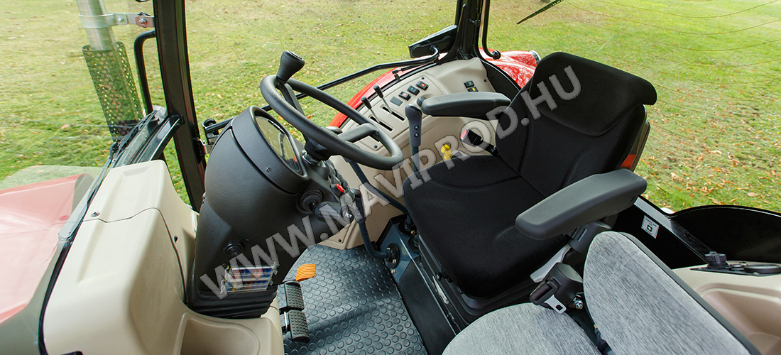 Automatikus légkondicionálóval és szellőztetéssel, légszűrő rendszerrel van felszerelve, ergonomikusan kialakított panoráma hátsó ablak páramentesítéssel és fűthető légrugós üléssel. A traktoron elől és hátul munkalámpák vannak felszerelve, azért, hogy éjjel is optimális munkakörülményeket lehessen biztosítani.